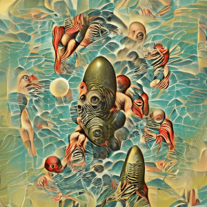 Thus, Botto goes away and does most of the hard yards by itself; it generates a random string of words and sentences, which it feeds into VQGAN (Vector Quantized Generative Adversarial Network). VQGAN uses the word string – plus its training algorithms and massive databases of prior artwork – to generate images.