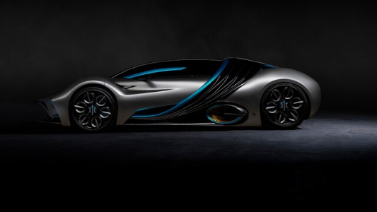 The most prominent feature, of course, is the loopy black ribbons extending up from the rear, curling down over the hips and wrapping through to terminate under the upward-opening doors. And these, apart from making the XP-1 look uncomfortably close to the Bugatti Chiron from several angles, are another trick up this car’s sleeve.