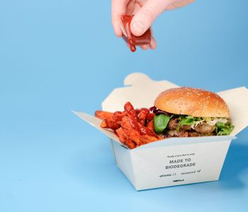 According to Notpla’s designers, the material is entirely biodegradable and edible and can be composted at home in four to six weeks. So far, the packaging has been used to create thin films and coating for cardboard takeaway boxes, as well sachets for condiments.