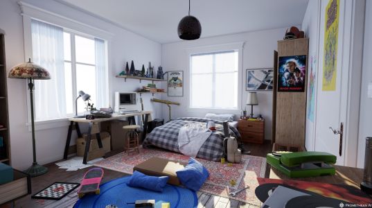 When necessary, Promethean will recalculate the scene, aligning a dresser against the wall and putting the shadows in the correct position. You can change the perspective and the whole scene moves with your viewpoint. You can add new objects to the scene like a newspaper, and the software simply layers on top of other objects. In 10 minutes, you can have a bedroom that looks like a scene from Ferris Bueller’s Day Off.
