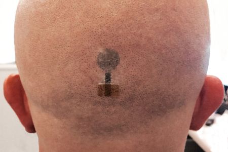 While the tattoo electrodes are not exactly invisible, anyone shaved bald and sporting a small circuit board glued to their head has a funny habit of being conspicuous, they don’t interfere with the wearer the way that a conventional EEG electrode headset might do. The fact that they could be applied and then forgotten about is one of their most exciting aspects, making them perfectly suited for longer-term measurements, and they stay on until scrubbed with soap and water to remove them.