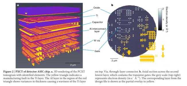 “Our experiments represent a major advance in chip inspection and reverse engineering over the traditional destructive electron microscopy and ion milling techniques. Foreseeable developments in X-ray sources optics and detectors, as well as adoption of an instrument geometry optimized for planar rather than cylindrical samples, could lead to a thousand-fold increase in efficiency, with concomitant reductions in scan times and voxel sizes.”