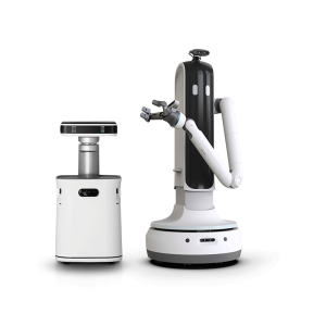 The tall, thin black and white robot has two large digital eyes to express emotion. It also has a single arm, with three joints allowing it to lift and move items. The robot uses cameras mounted to the body and AI to recognise objects and complete chores.
