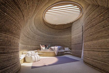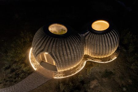 By using this technology, housing modules can be built within 200 hours while consuming an average of six kilowatts of energy and reducing typical construction waste almost entirely said the construction team. According to the studio, the housing prototype combines ancient building techniques with modern technology to form recyclable, low-carbon, climate-adaptable housing.